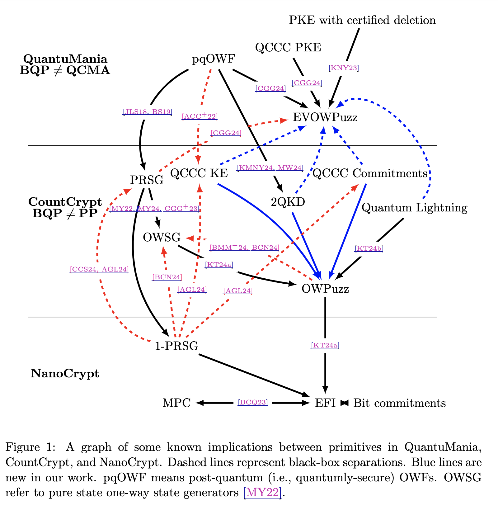 Early work of GKM+00 lays out how these different primitives relate to each other. TODO continue explaining that this is pretty different than OWF, because OWF imply all sort of things